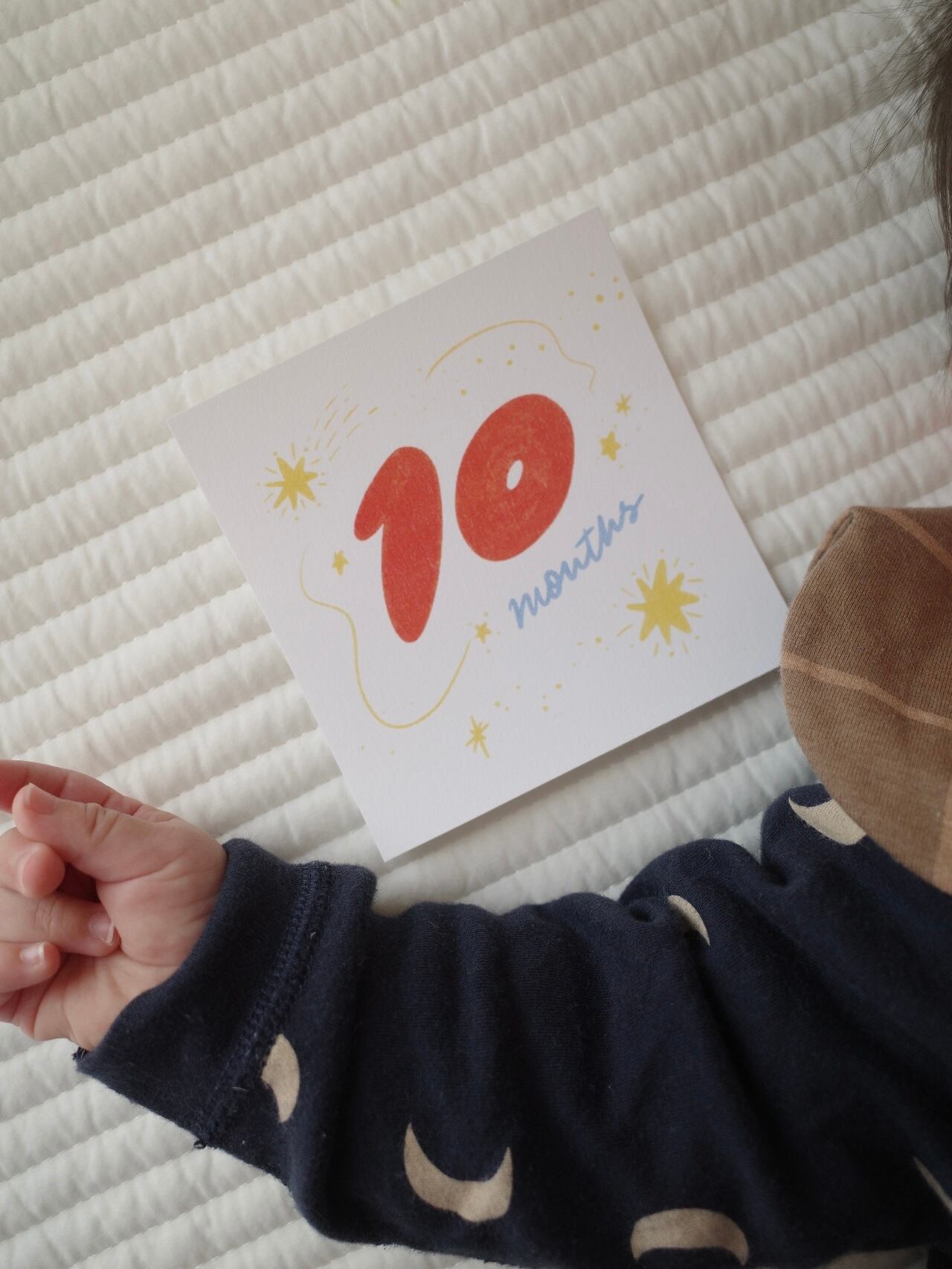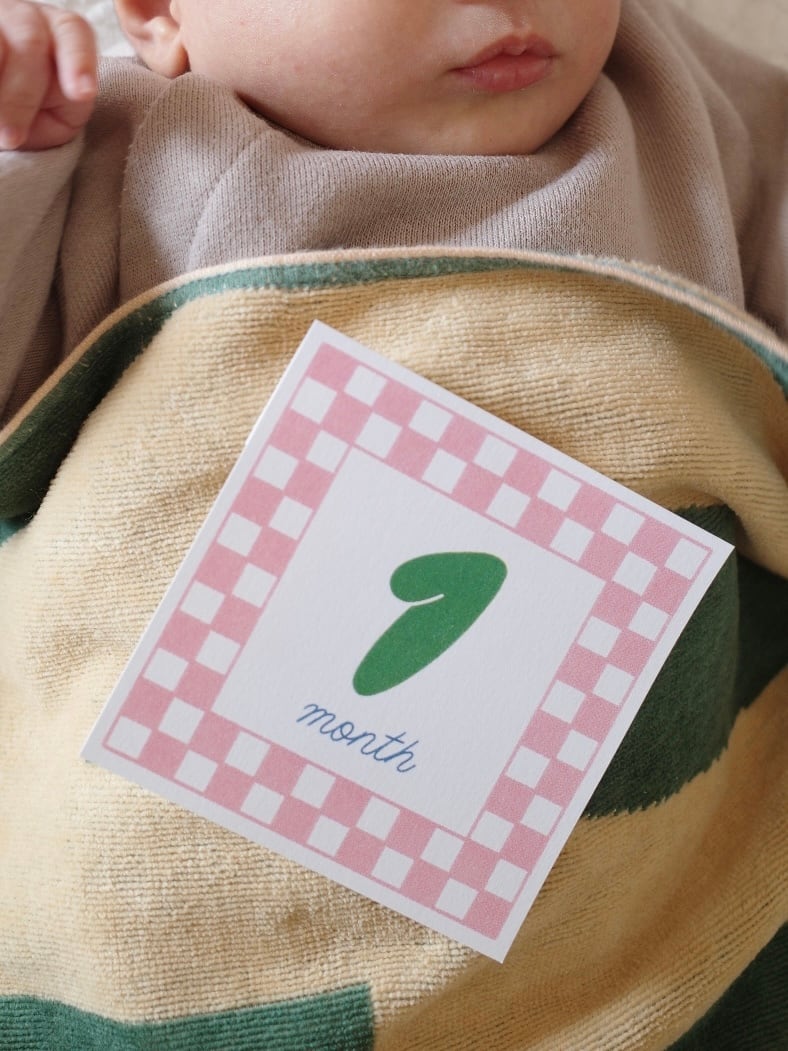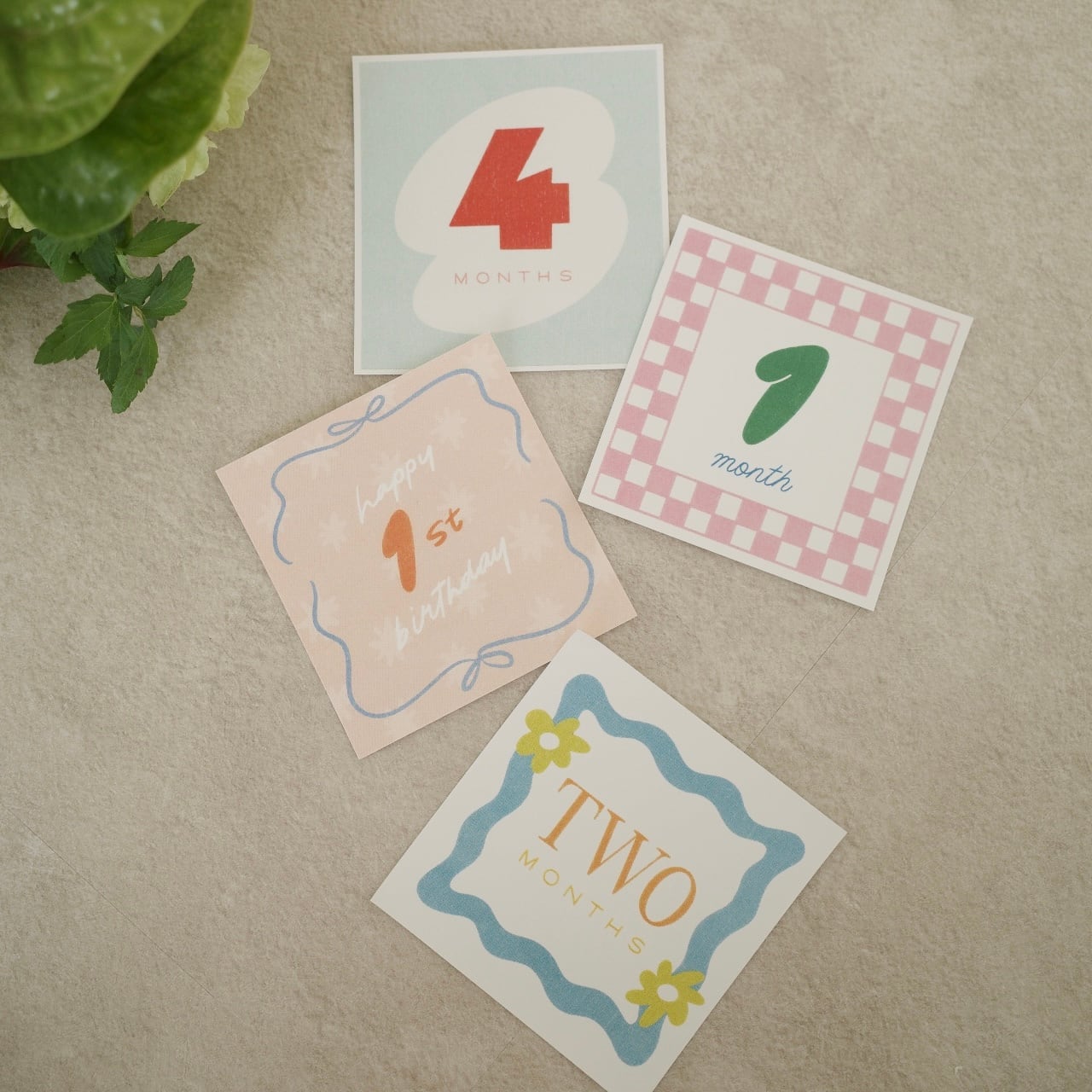 生まれてから1歳の誕生日まで毎月お使いいただけるマンスリーカードです。